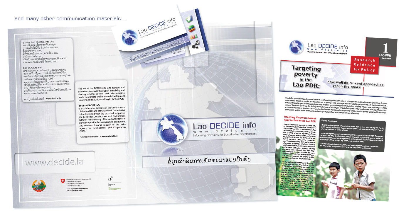 From 2012 to 2013, I worked for the Centre of Development and Environment of the University of Bern, Switzerland (CDE/Ub), office in Lao PDR, for the Lao Decide Info initiative as a communication manager | graphic designer
